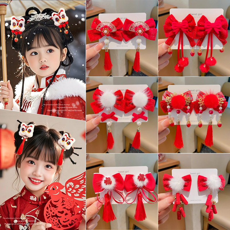 新年の髪飾りの女の子の新年の髪飾り2025の新しい子供の古風な蝶結びのフリンジヘアの髪飾り
