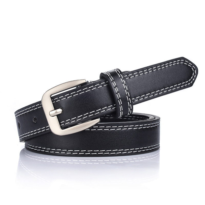 女性用ベルトの本物の牛革には、新しいファッションベルトの女性用装飾とジーンズのカジュアルなシンプルな黒がついています