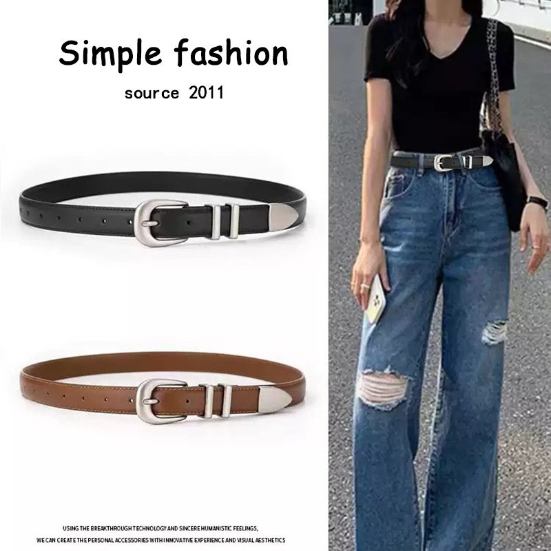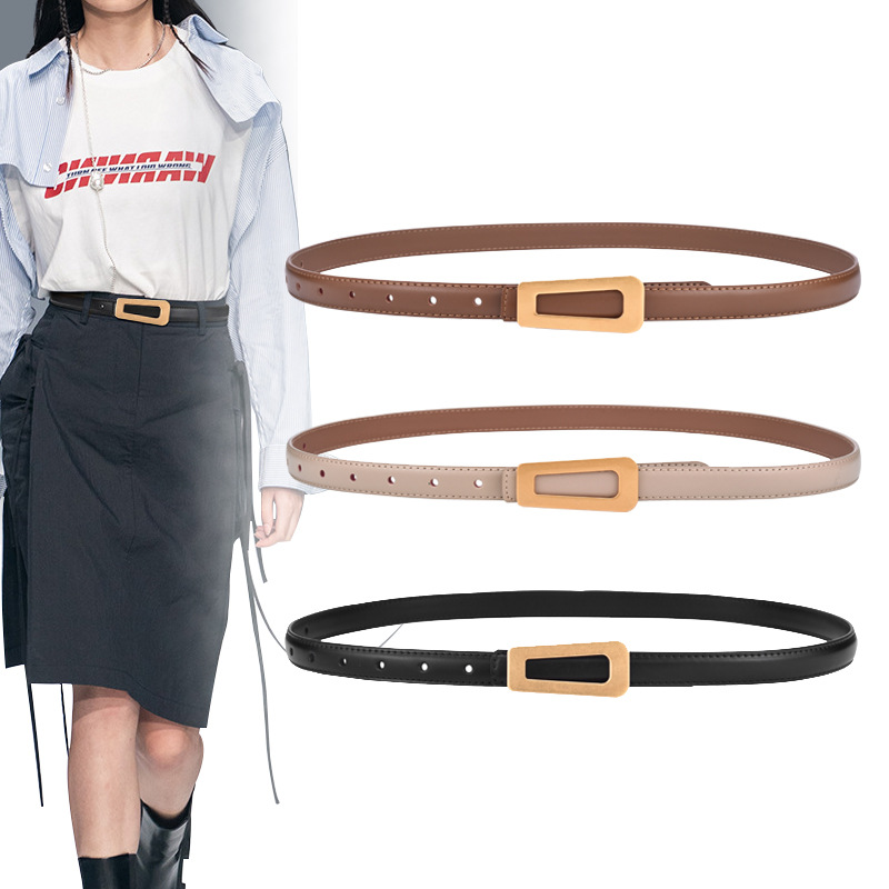 女性の本革ベルトはシンプルで、細いベルトでワンピースの細いベルトを飾ります。