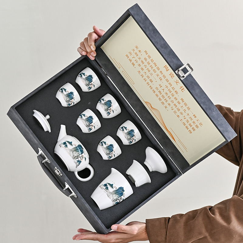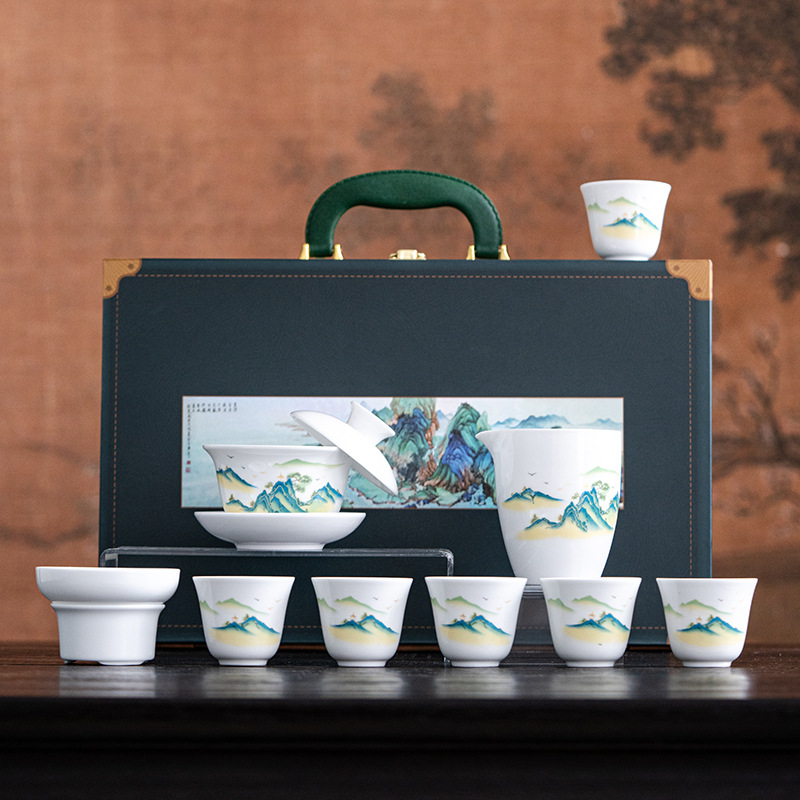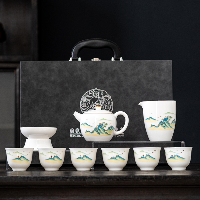 羊脂玉茶器セット中国白蓋碗工夫茶杯陶磁器ティーポットセットビジネスプレゼント高級大気