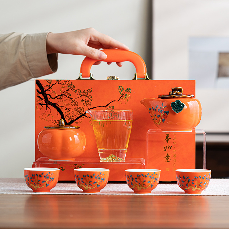 柿柿如意手掴み壺茶道具セット高級ギフトボックスビジネスお土産引っ越しプレゼント祝日お祝いロゴ