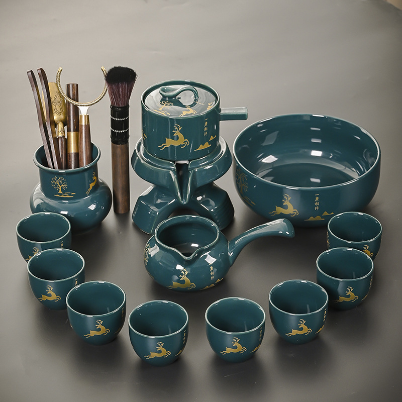 怠け者の茶器セット家庭用リビングルーム半自動石臼カンフーカップ事務用ティーポット流通セット