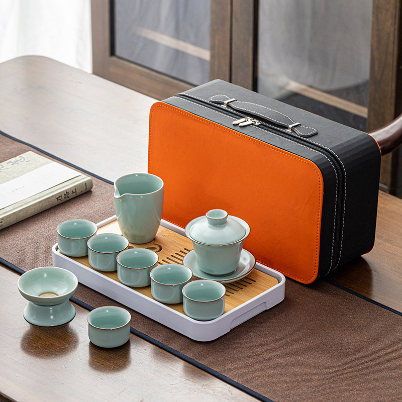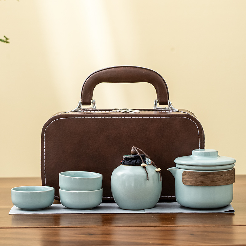 新型ねじ蓋汝窯旅行茶器セット携帯型快客杯泡ティーポットビジネス祝日プレゼント記念