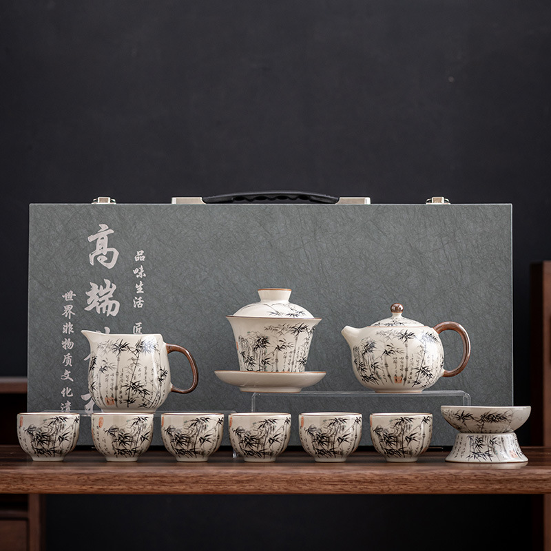 2024新型哥窯茶器セット家庭用軽贅沢高級泡茶専用セットビジネスギフトボックスが活動している