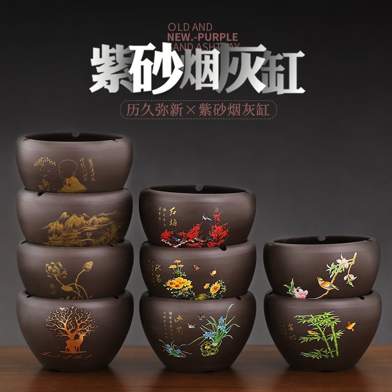 紫砂陶磁器灰皿創意家庭用オフィス個性潮流客間中国式飛灰防止灰皿