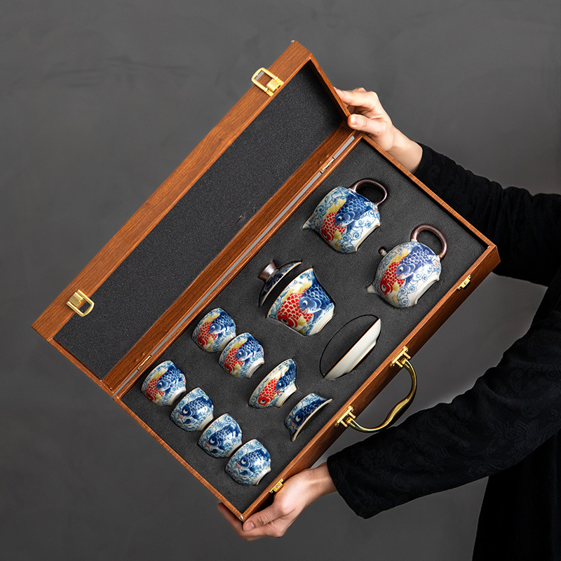 汝窯龍魚カンフー茶器セット陶磁器蓋碗ティーポットセット企業開業イベントプレゼント記念