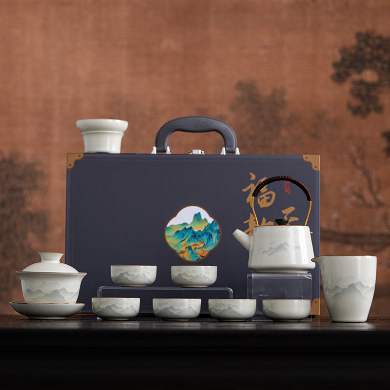 遠山汝窯工夫茶器セット陶磁器提梁ティーポット蓋碗茶杯セットオフィス高級茶器