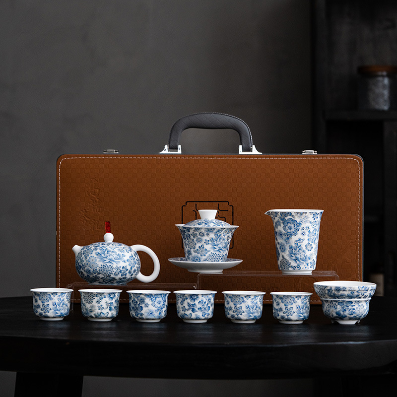 卸売白磁茶器セット、特価青花磁器蓋碗、お得なギフトボックス、カスタムギフト