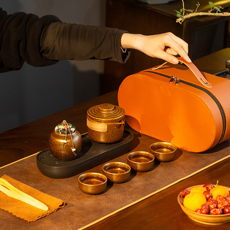 屋外ポータブル窯変快客杯一壺四杯付茶盤工夫泡ティーポット旅行茶器セットシンプル
