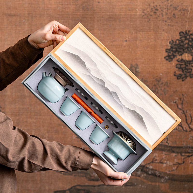 山河無事天青汝窯提梁壺茶器セット香炉乾泡茶盤高級ギフトボックスにプレゼントします。
