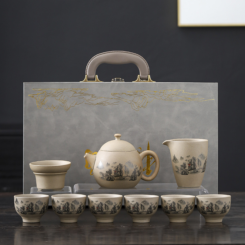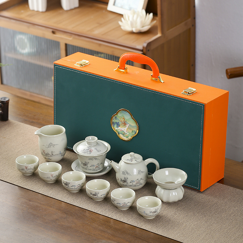 ハイエンドの汝窯茶器ギフトボックス陶磁器の工夫茶セット山水ティーポット