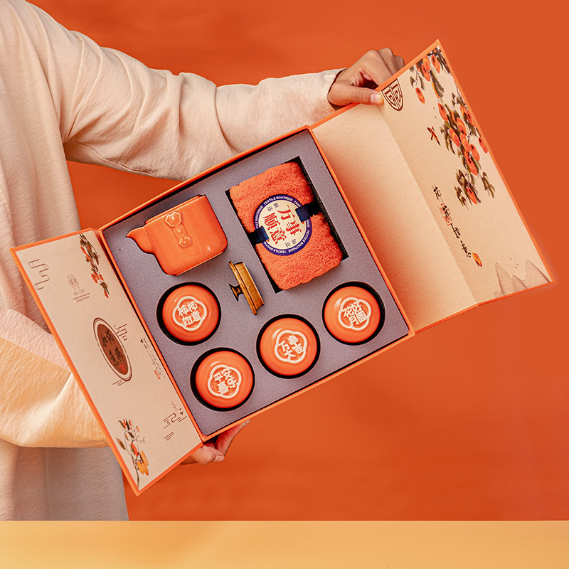 創意中秋節国慶節柿如意茶器ギフトセットオーダーロゴ会社ビジネスイベントお土産
