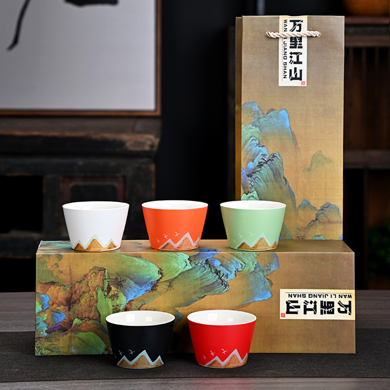 国潮創意茶杯品茗杯礼箱セット万里江山陶磁器主人杯お土産オーダーメードLOGO