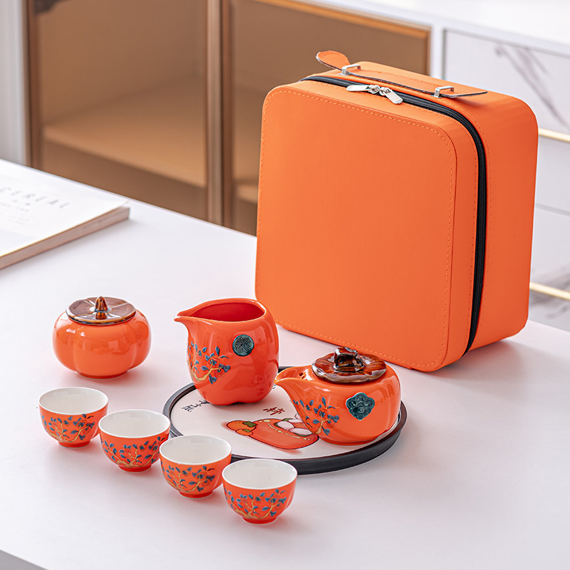 柿柿如意万事如意旅行工夫茶道具カップセット家庭用陶磁器快客カップ携帯ティーポット