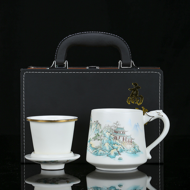 素焼き羊脂玉白磁のオフィスカップ蓋付き濾過茶水分離ティーカップ高級ティーカップ個人マグカップ