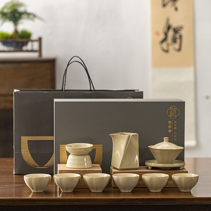 米黄汝窯茶器セット蓋碗茶杯公道杯高級カンフー茶器セット家庭用オフィス茶器