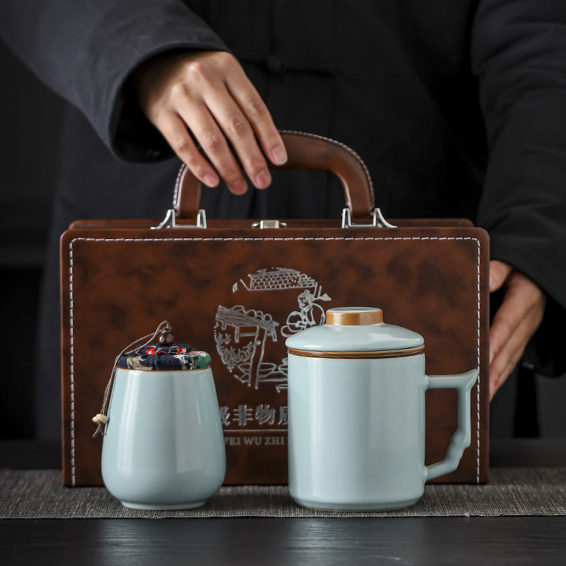 汝窑水杯办公室泡茶杯男女茶水分离杯过滤陶瓷杯子带盖定制送礼品