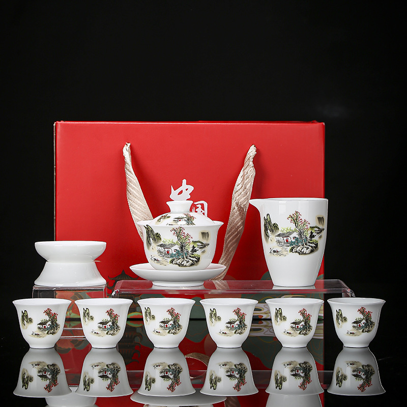 羊脂玉白磁工夫茶器セット家庭用オフィスティーポット