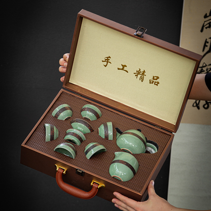 哥窯茶器セットシンプル家庭用天青釉功夫茶セットカップ蓋碗ティーポットレトロ中国式セット