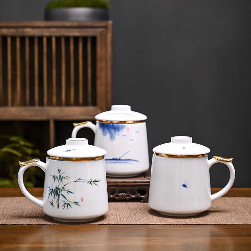 クリエイティブマグカップ陶磁器手描きカップ家庭用水カップ男性オフィスコーヒーカップ入浴カップ朝食カップ