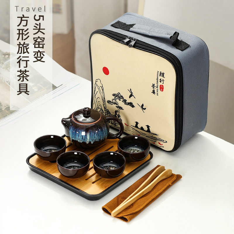 旅行茶器セット携帯バッグ中国式均窯窯変陶磁器一壺四杯部品茶葉缶ビジネスプレゼント