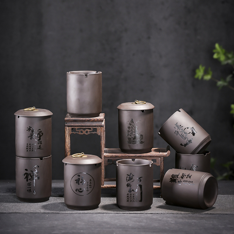 陶磁器のまっすぐな身の紫砂の灰皿のアイデアの個性のファッション的な防風の大きいサイズの客間の家庭のヨーロッパ式の潮流は蓋を持ちます。