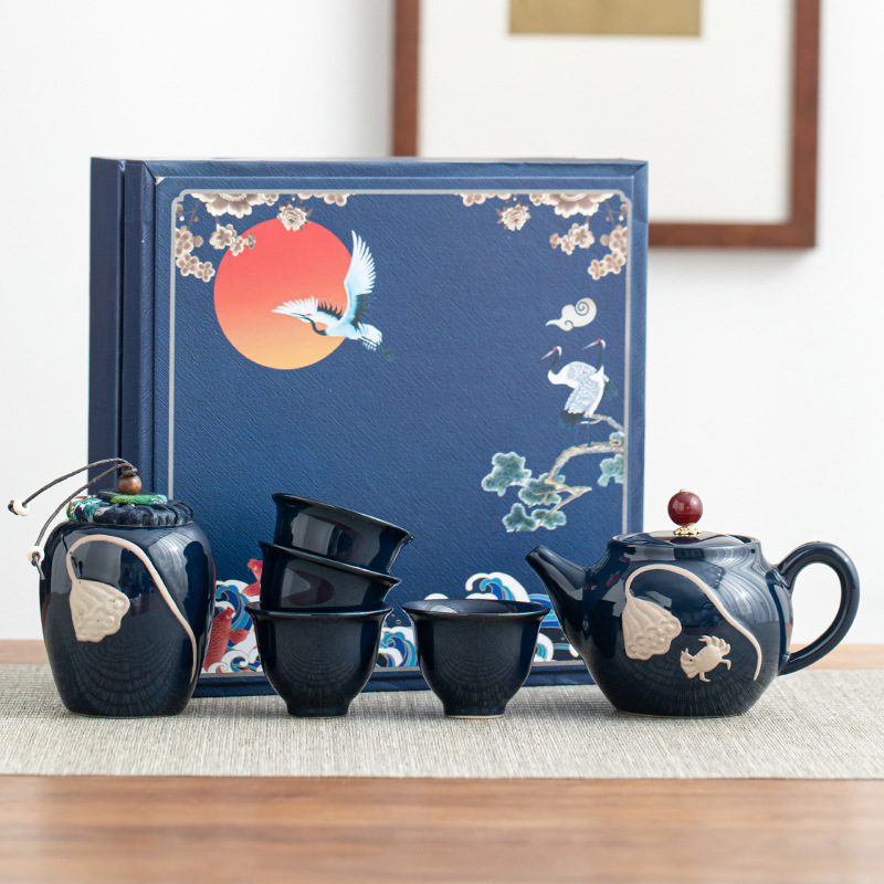 工夫茶器セット国風復古ティーポットカップ1ポット4杯茶葉缶家庭用プレゼントギフトボックス