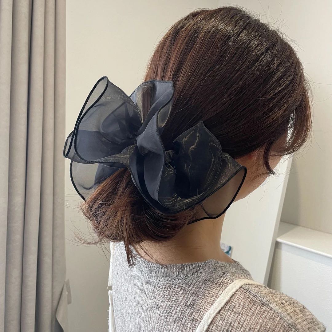 韓国オーガンジーライト高級ハイエンドヘッドバンド気質メッシュプリーツヘッドフラワーニッチデザイン大腸ヘアバンドゴムバンド