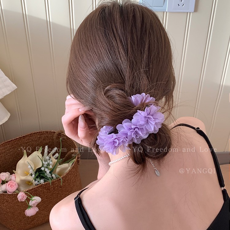 韓国オーガンジーライト高級ハイエンドヘッドバンド気質メッシュプリーツヘッドフラワーニッチデザイン大腸ヘアバンドゴムバンド