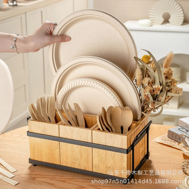 木製カトラリーボックスキッチン銀器ホルダー鉄製ナイフ、フォーク、箸収納ボックス学生文具コンパートメント収納ボックス