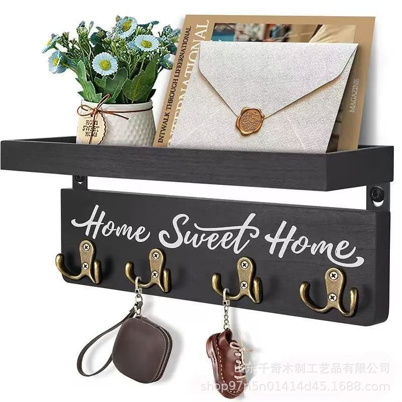 木製壁掛け式封筒棚部屋寝室書斎鍵フック実木壁面雑物整理棚