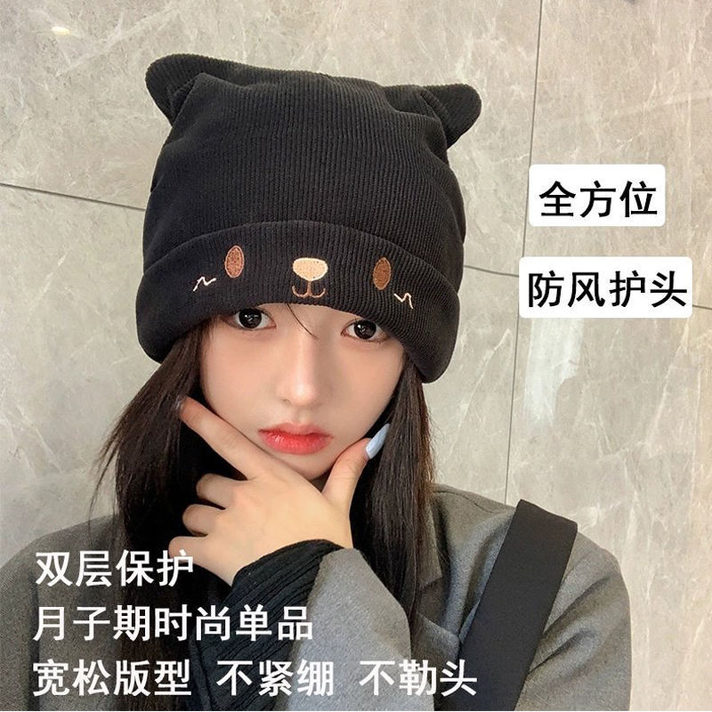 月子帽産後妊婦秋冬型帽子女性ニット包頭帽子毛糸帽が顔を見せてかわいい冷帽冬