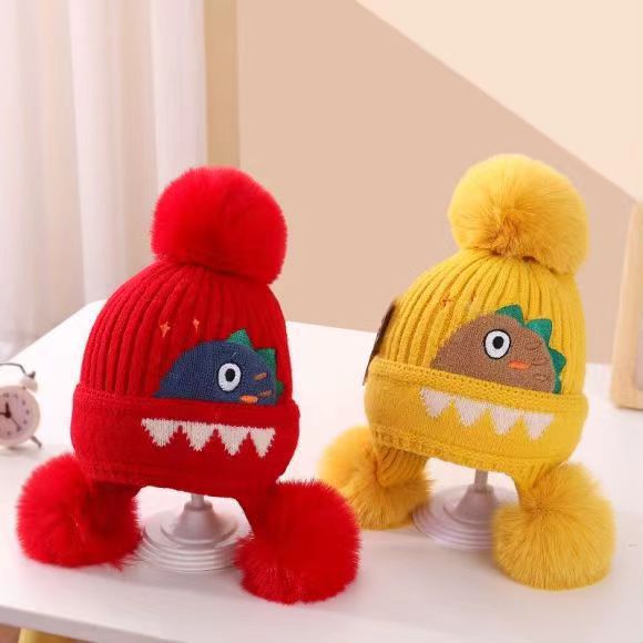 子供の帽子秋冬の新型の男女の赤ちゃんの双球の耳の保護のニットの毛糸の帽子のかわいい恐竜の保温帽子