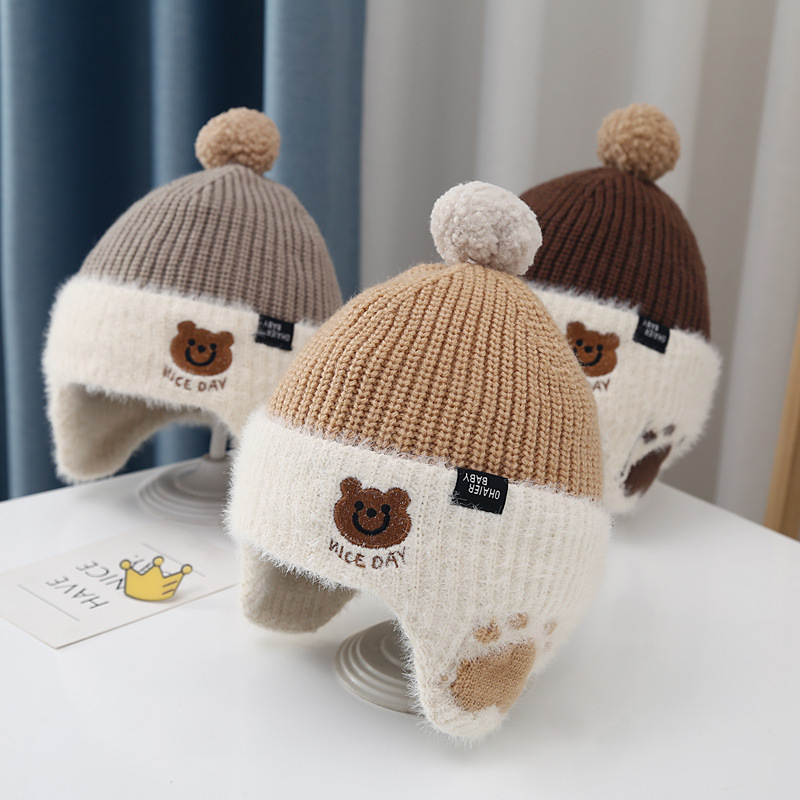 アニメ男女赤ちゃん毛糸帽かわいい毛玉ニット帽男の子冬新型保温子供用耳保護帽子
