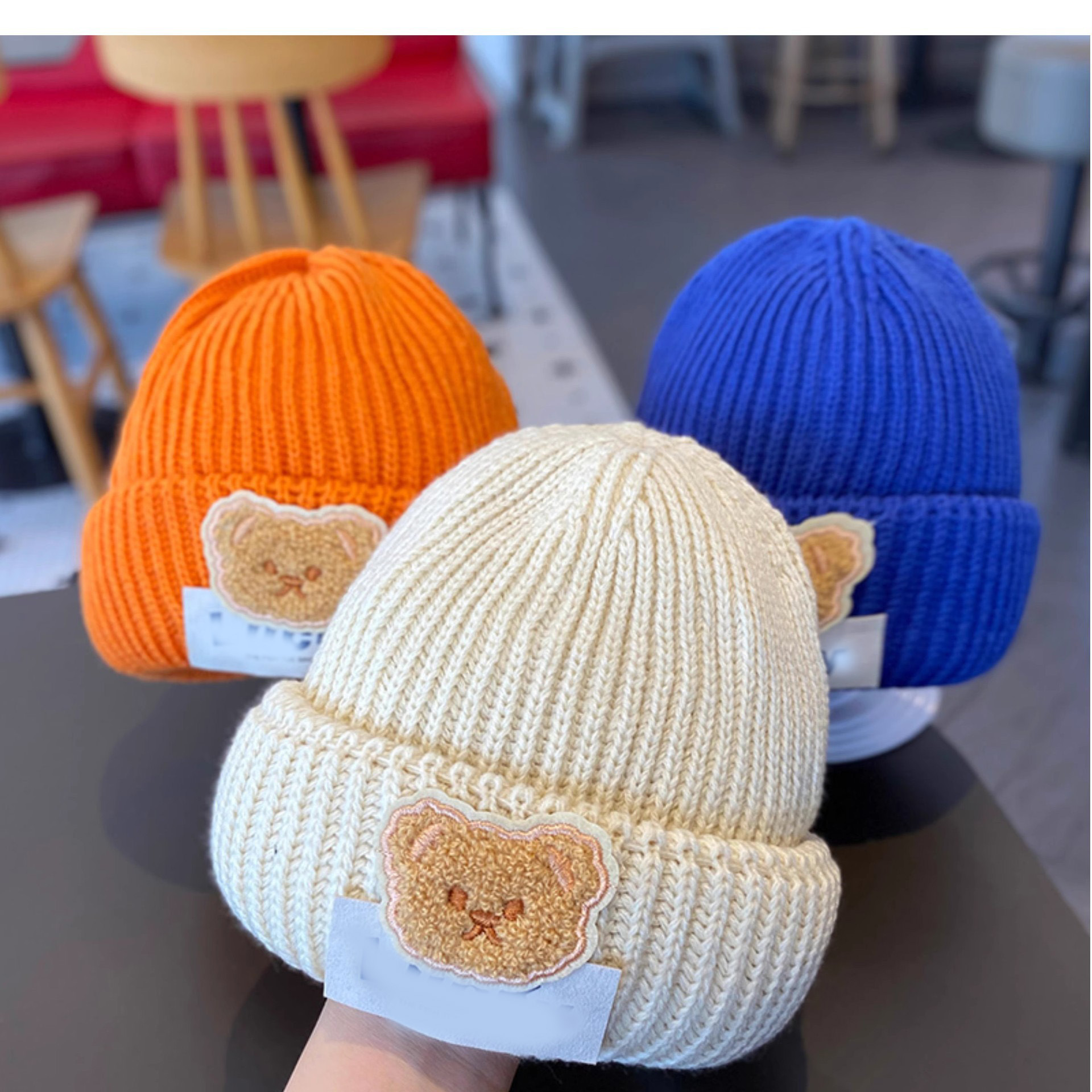 2024韓国版冬の男女赤ちゃんカジュアル毛糸帽子供ニット帽立体人形キャンディー色帽子超萌え