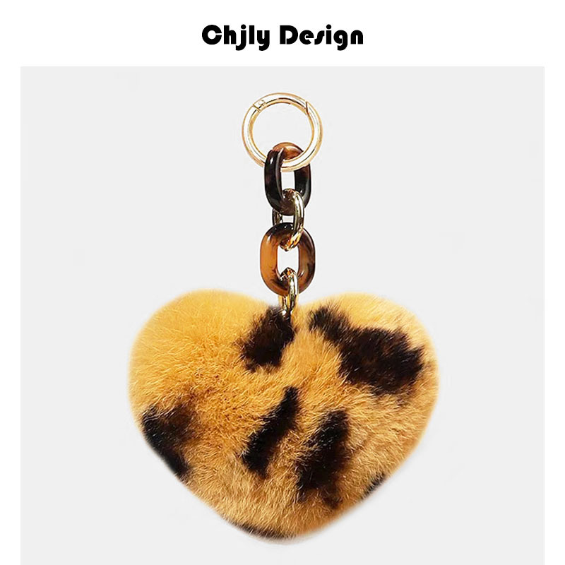 リアルレッキスラビットファーヒョウ柄ラブファーボール車のキーホルダーペンダントかわいいハート型ぬいぐるみバッグペンダント親友ギフト