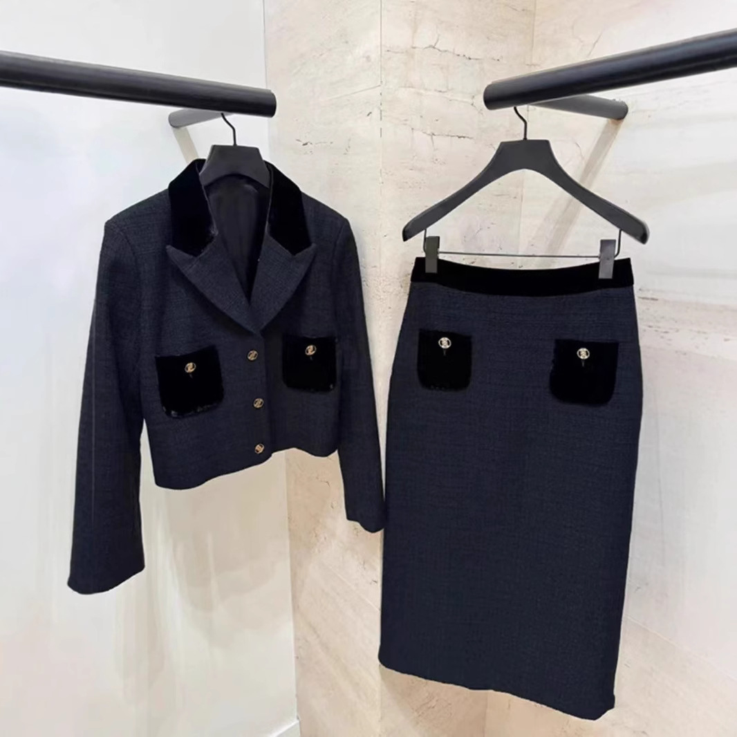 フランスの優雅な2024秋冬の新しい赫本風の玉はダイヤモンドの丸首を入れて腰の泡の袖のベルベットの小さい黒いスカートを現します。