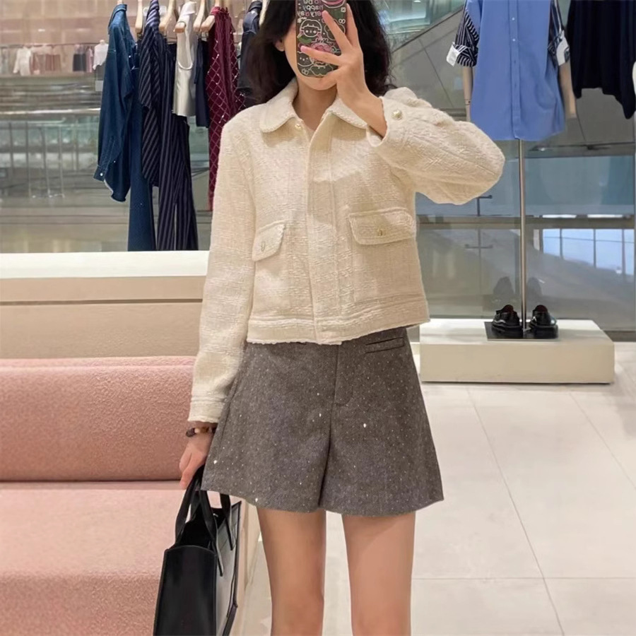 フランス式大衆2024秋冬新作雑花粗花ですね立襟ジャケット馬術服ショートコート