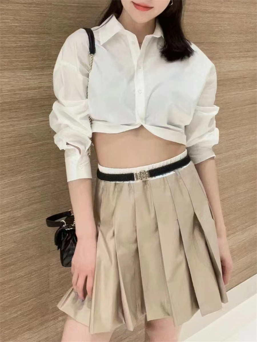 2024春夏新作フランス学院風工装高腰百タック半スカート