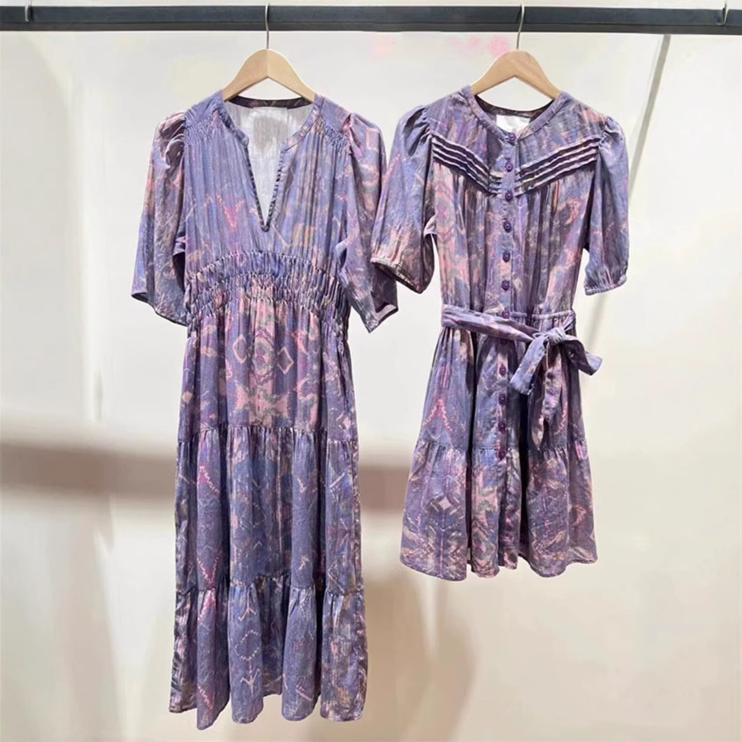 フランスの優雅な2024夏の新型モネの紫の暗い紋様のプリントの通勤の休暇の風の頭のワンピース