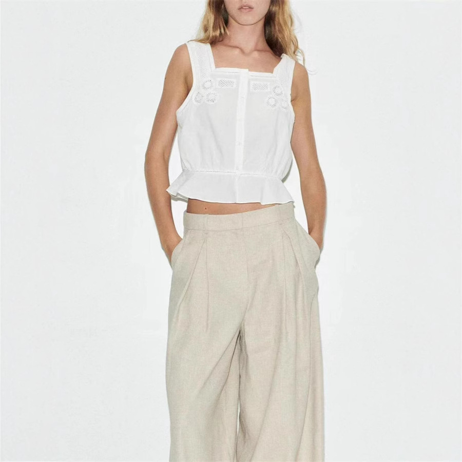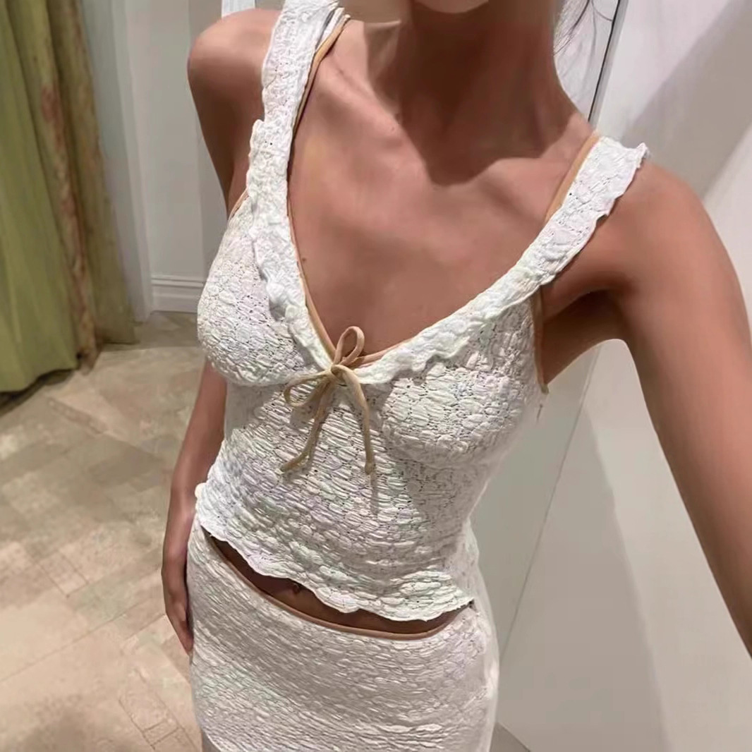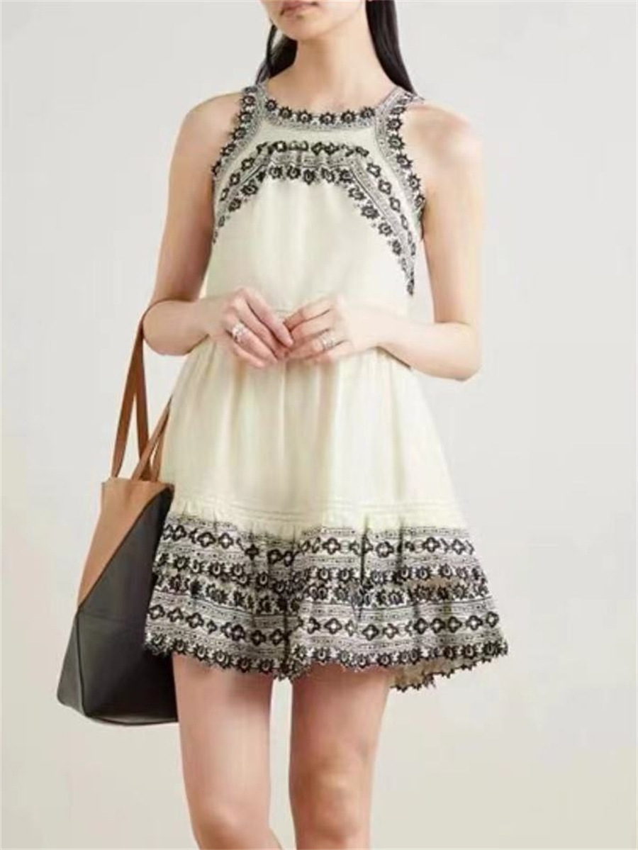 おしゃれな大衆デザイン24春夏透かし彫りフック編み立体デカールベルトワンピース立体デカールベスト