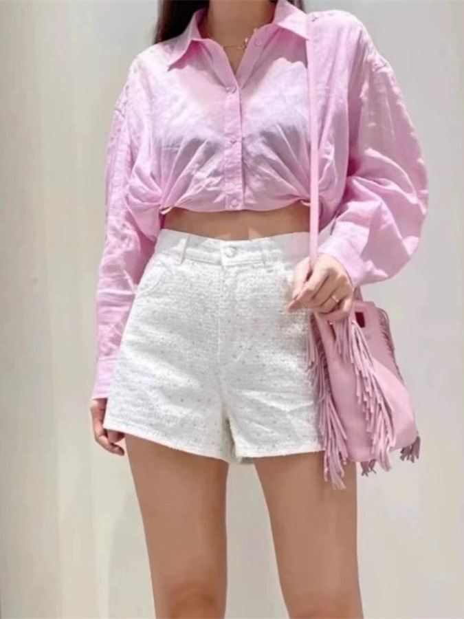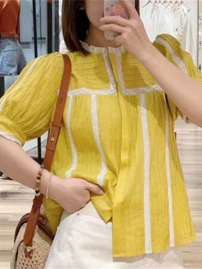フランス式大衆2024春夏甘いドーパミン透かし彫りレース半袖単列ボタンシャツ