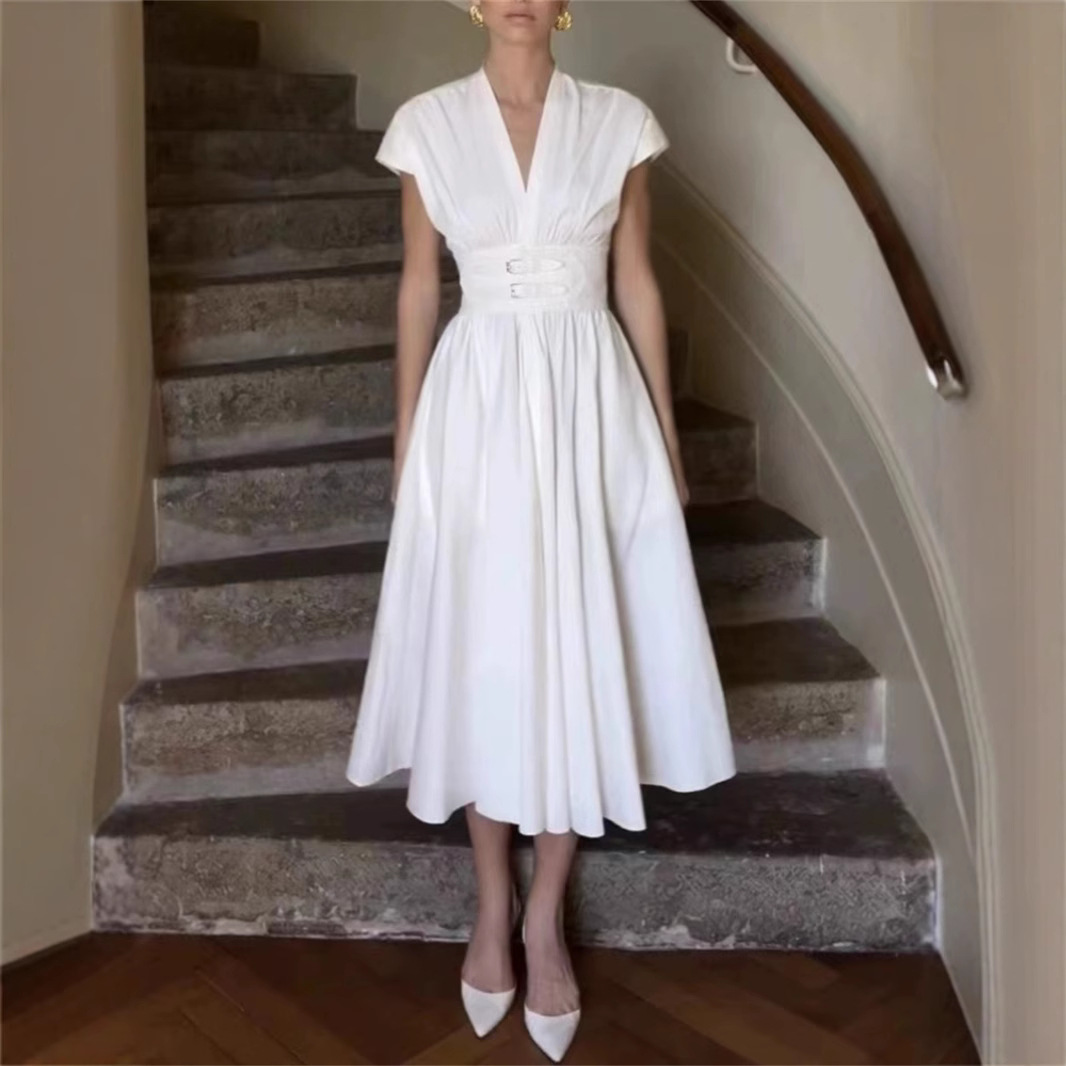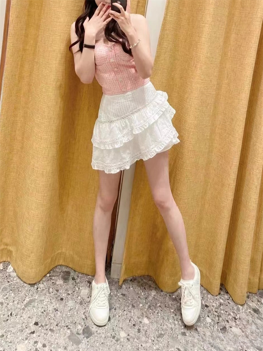 フランス式の優雅な24夏の新型の甘い白いスカートの高腰のハスの葉の辺のA字のケーキのスカート