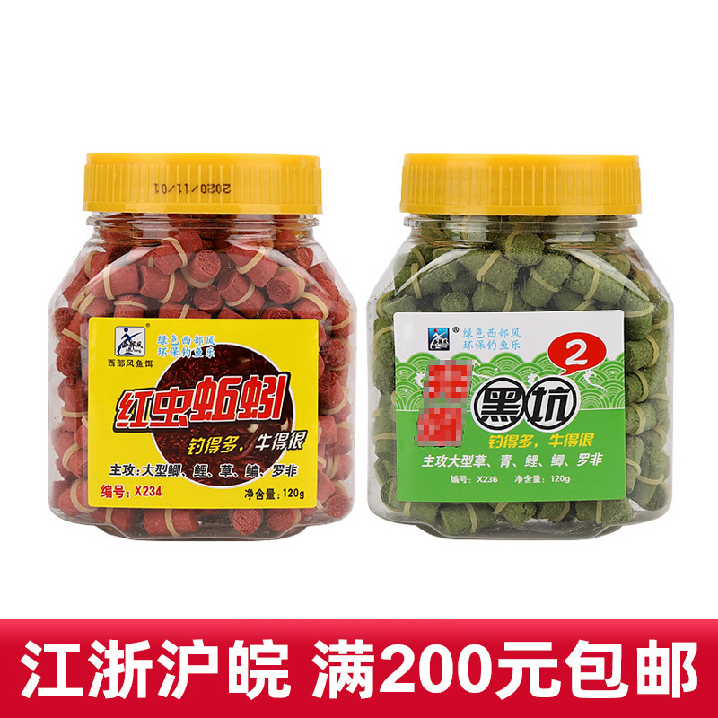 ウエスタンスタイルの魚餌、膨張性ゴム粒、完黒坑123号 # 赤虫ミミズ中型ゴム粒120g