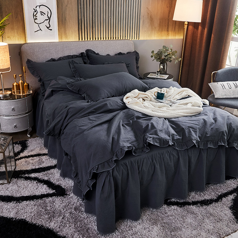 WBZ7純綿水洗い綿ベッド4点セットシンプルな裸で寝ている柔らかいベッドのスカートは四季のベッド用品をカバーしています。