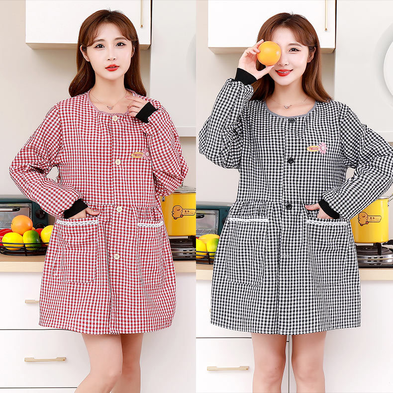 Wbz7新型前ボタンのエプロンの長袖は服を着ています。