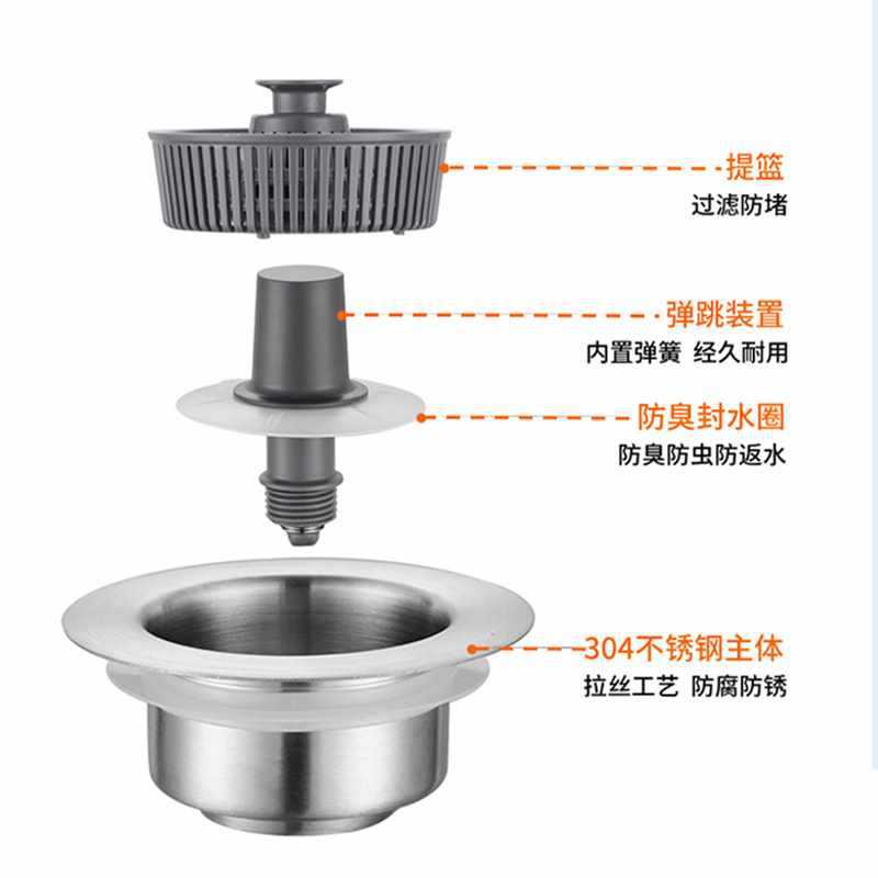 ✅ ステンレス製キッチンシンクバウンスコア排水口シンクフィルターバスケットシンク水漏れ防止カバー