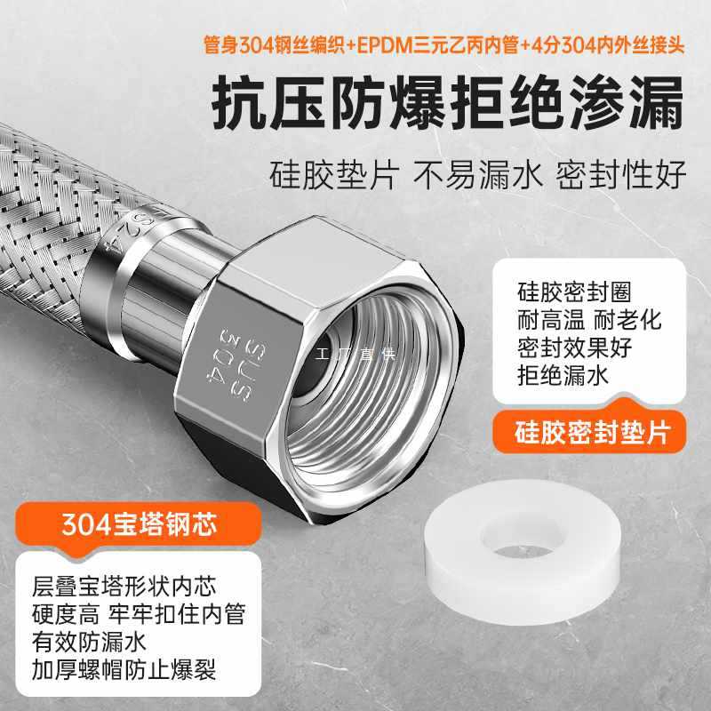 ✅ 304 ステンレス鋼金属編組内外線接続 4 点給水ホース温水および冷水パイプ家庭用防爆延長