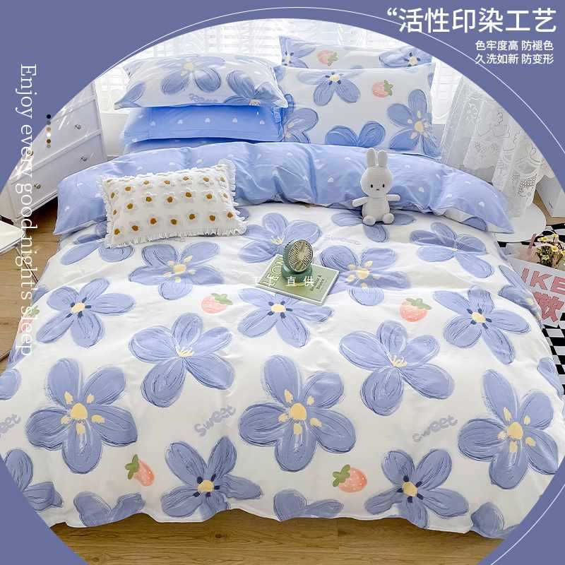 ✅ 春夏純綿プリントベッド4点セット新寝具寮シーツとボックスシーツ3点セット花柄キルトカバー