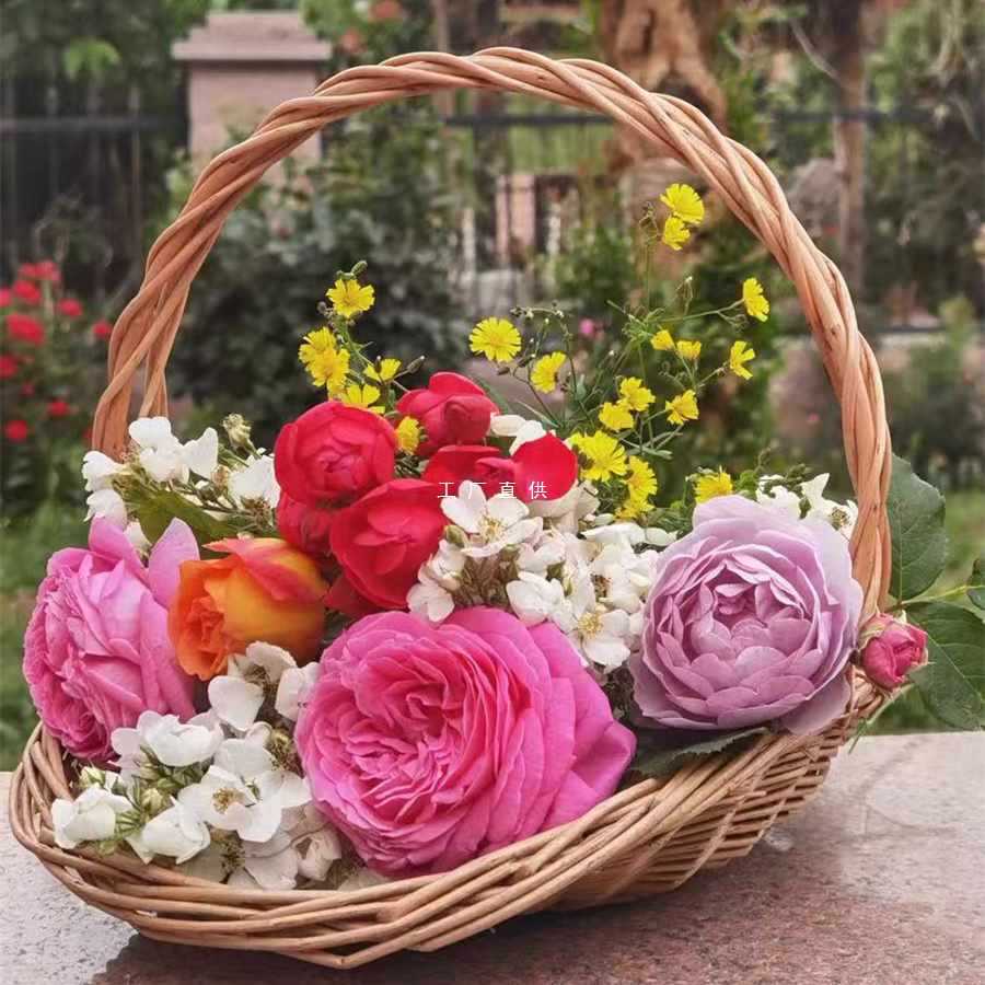 ✅ フラワーバスケット、わら編み籐、柳編み手編みフラワーアレンジメントバスケット、ポータブル収納バスケット、竹編みフルーツピッキングバスケット